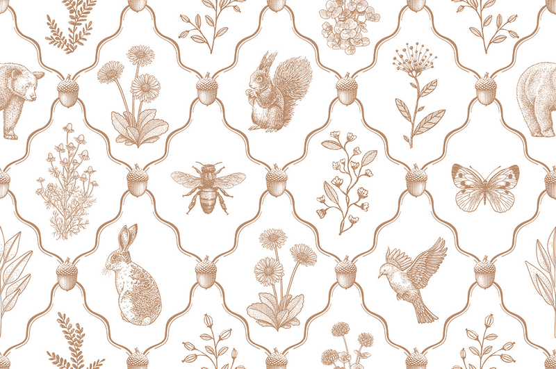Tweedekansje | Kleine beer patroonbehang | terracotta - 389b x 240h cm