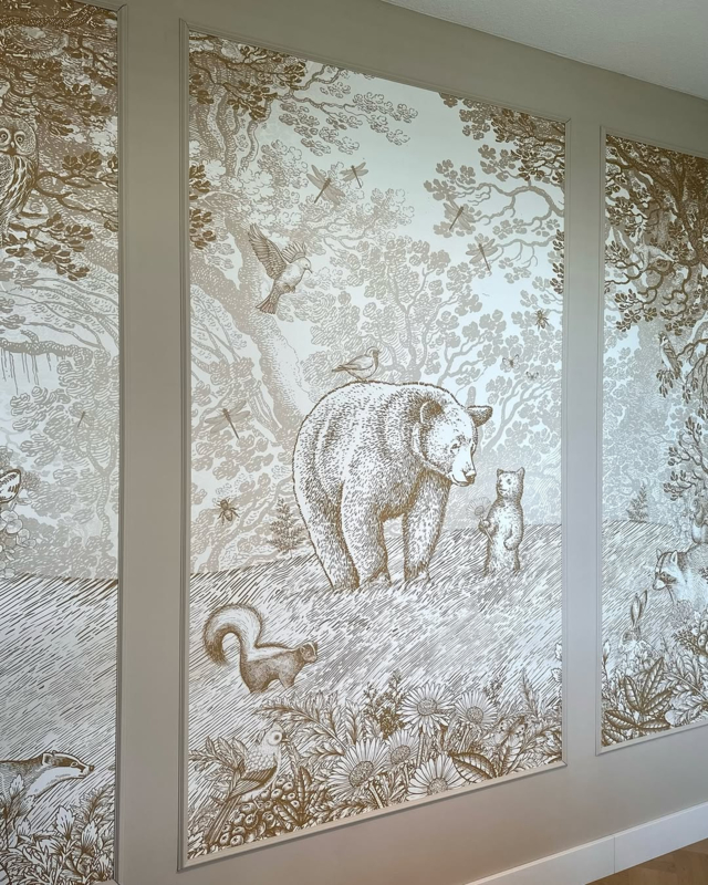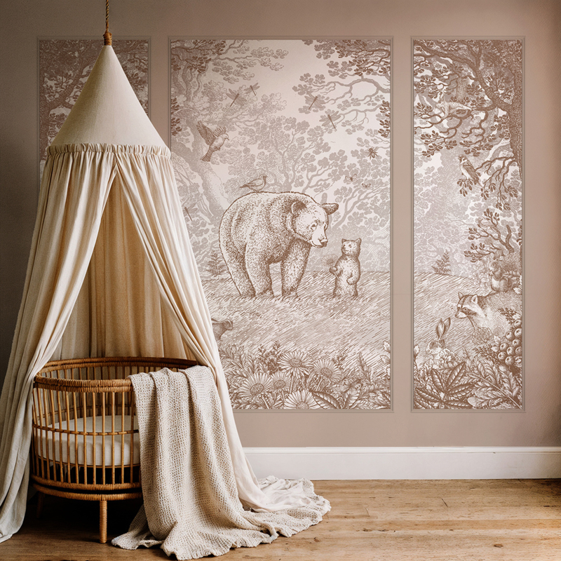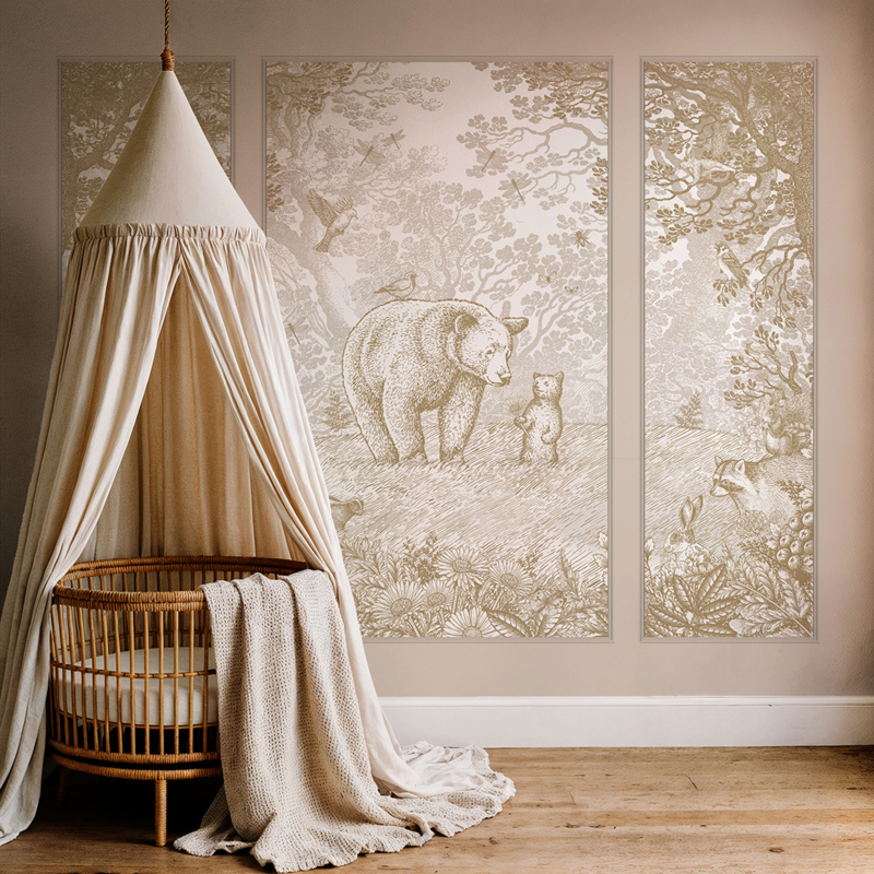 Een selectie van onze ontwerpen is verkrijgbaar in een drieluik om toe te passen in sierlijsten. Dit is de perfecte manier om de kinder- of babykamer nóg meer sfeer te geven. De drie delen zijn al voorgesneden, dus dat is extra makkelijk aanbrengen. Onafhankelijk van het gekozen formaat bestaat de set uit 4 banen in totaal, de zijpanelen komen in één baan en het centrale deel in twee banen. De banen zijn exact aansluitend dus je zou de vier banen ook in één grote lijst kunnen plaatsen.