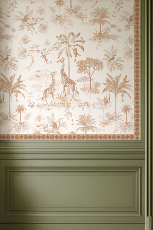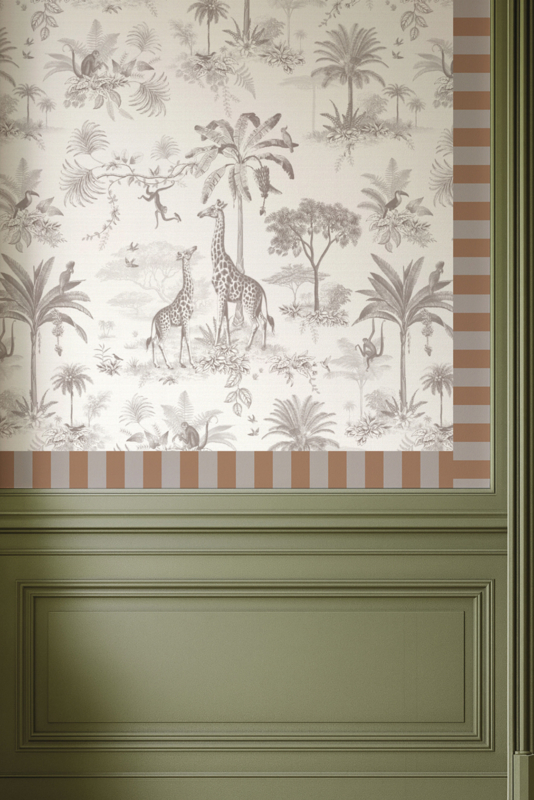 Behangrand Streep | groen & zandPrachtige behangrand uit de collectie van Pimpelmees! Dit is behangrand Streep in de kleuren groen & zand.