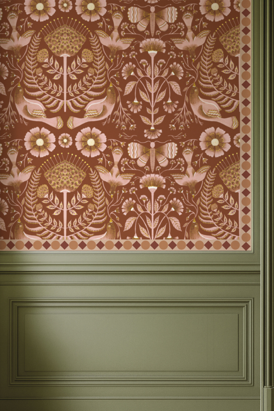 Behangrand Ruit | steenrood, oudroze & zandPrachtige behangrand uit de collectie van Pimpelmees! Dit is behangrand Ruit in de kleuren steenrood, oudroze & zand.